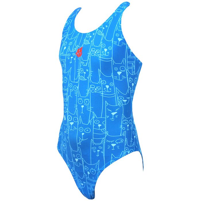 This cute and fun cartoon cat print swimsuit from Mad Wave is ideal for leisure swimming in the pool or at the beach.